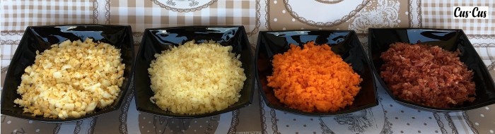 TMX: el huevo se pica 1 seg a vel 4. El queso, zanahoria y jamón serrano en tacos se pican a vel turbo 2 seg tantas veces como fino lo queramos.