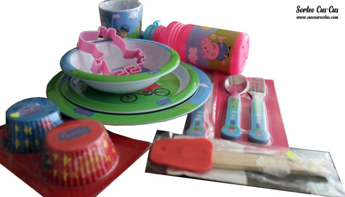 Como ya sabéis, en Jaén «hasta San Antón, pascuas son». Así que como todavía nos posee el espíritu de la Navidad y este 2018 lo vemos lleno de recetas, ilusión y juntas #cuscuseras, ¡hemos decidido hacer un sorteo! Hemos comprado algunas cositas en Sqrups Jaén, todas relacionadas con la cocina para los peques y con nuestra querida Peppa Pig: 2 platos, 1 cuenco, 1 vaso, 1 termo, cuchillo, cuchara y tenedor, 1 espátula, 1 molde para galletas y moldes para magdalenas.