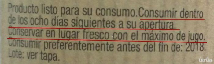 - Seguiremos rigurosamente las instrucciones de conservación y consumo. Si nos dice: «Una vez abierto, consumir en tres días«, ese será el plazo para consumirlo pero siempre que sea antes de la fecha de caducidad. Si lo abrimos un día antes de que caduque, ya no tendremos 3 días para consumirlo.