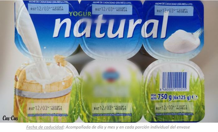 - La fecha se indicará en este orden: día, mes y, eventualmente, año. Además se indicará en cada porción individual del envase.