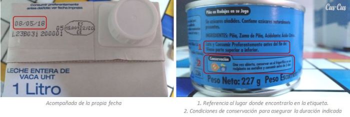 Estas menciones irán acompañadas de la propia fecha o de una referencia al lugar donde encontrarlo en la etiqueta. Además, si fuera preciso, estas indicaciones se completarán con la referencia a las condiciones de conservación para asegurar la duración indicada.