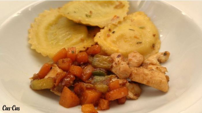 Una receta súper rápida y muy simple. Contando, claro, que la pasta rellena la hemos comprado. Aún no nos hemos atrevido con la elaboración de pasta fresca, pero todo llegará, jaja. El acompañamiento de esta pasta van sin salsa, a diferencia de la carbonara, boloñesa, etc. Sólo las verduras, pollo y un poquito de salsa de soja. Este acompañamiento va muy bien con pasta larga (como nos dijeron en un restaurante italiano en #Jaén), pero nos atrevimos a probarla con pasta rellena de queso y estaba riquísima. Nosotros la hemos elaborado con dos tipos de pasta rellena para probar: una rellena de espárragos y beicon y otra de queso y trufa. En casa la valoración de ambas ha quedado en empate, 2-2.
