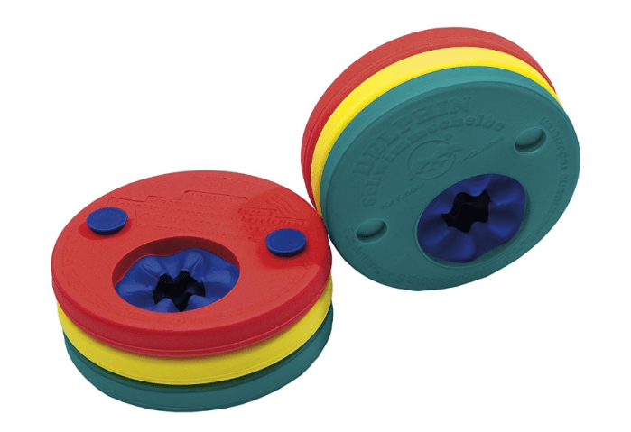 - MANGUITOS. Nosotros nos decantamos por los de gomaespuma porque evitamos el que se pinchen, y aún así no son un mecanismo seguro de flotación. Hemos de estar con ellos porque pueden escurrirse, por ejemplo. Nosotros encontramos el Modelo Delphin (lo podéis encontrar en Amazon, sirve para ir quitándole discos según vayan avanzando en el agua, están fabricados con espuma de poliuretano y soportan hasta 60 kg) y el Modelo Decathlon (bloques de espuma con correa elástica, concebidos para niños en fase de exploración o aprendizaje de las primeras experiencias acuáticas. Se recomiendan para niños entre 15-30 kg, pero hemos de decir que nosotras empezamos a usarlos cuando pesaba 10 kg y como no se le escurrían, nos fueron fenomenal).