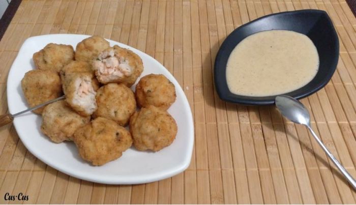 - Hacemos bolitas, rebozamos en harina y freímos en abundante AOVE. Escurrimos sobre papel absorbente.