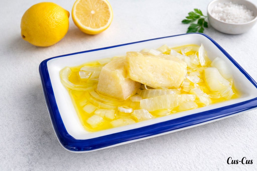 - Ponemos a hervir agua y una vez que el agua entre en ebullición, añadimos la yuca y la dejamos cocer 15 minutos a fuego medio-fuerte.