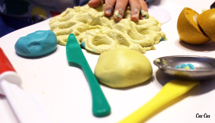 Tardes de frío. Tardes de lluvia. El ingenio se nos agudiza. Estos últimos años hemos hecho de todo: desde «dibujar» una rayuela en el suelo con cinta de carrocero (la que utilizan los pintores), pasando por hacer la cena en común (os recomendamos baberos XXL), hasta esta fantástica plastilina casera que ha triunfado este invierno. Hemos probado varias y éstas son las proporciones con las que hemos conseguido el mínimo pringue posible (casi no se pega en las manos) y la máxima elasticidad y plasticidad 🙂 Además, ellos también pueden ayudar a mezclarla y les resulta súper divertido. Eso sí, el colorante os recomendamos que lo mezcléis vosotras y que si podéis, lo hagáis con guantes; ya que hay algunos que tiñen mucho-muchísimo (estos últimos que hemos comprado de la marca Dr. Oetker se van fácilmente con agua y jabón).