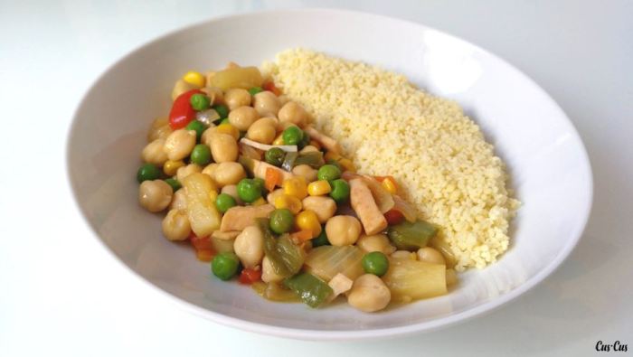 Esta receta es una versión muy parecida a esta otra, Cus·Cus de verduras y garbanzos. Hay leves diferencias entre ambas, como los ingredientes, que cambian un poco. Pero la principal diferencia es que la de hoy la hemos hecho con Thermomix®. Así podéis seguir la que más os convenga ;).