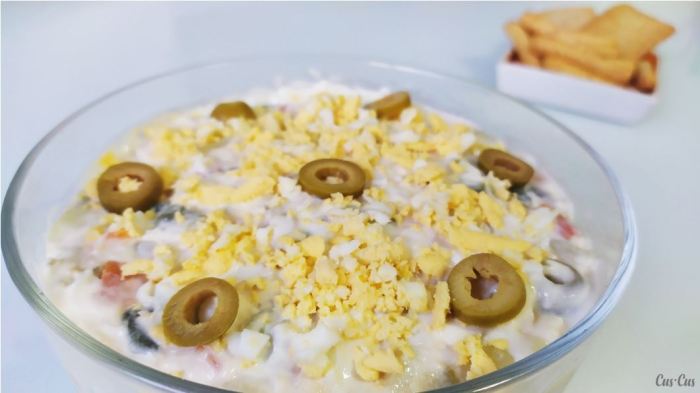 - Podemos cubrir la ensaladilla con un poco más de mayonesa y decoramos con huevo rallado o en rodajas, aceitunas, pimientos, etc.