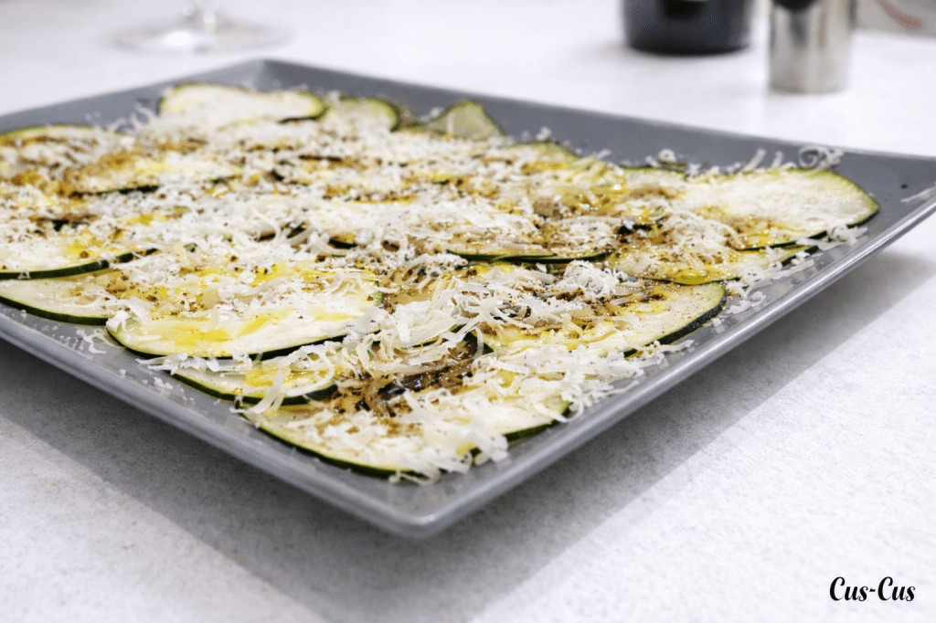 - Queso parmesano rallado al gusto decorando el calabacín.