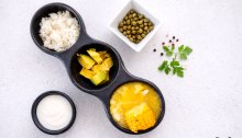 Ensalada templada de salmón ahumado, patatas, huevo y alcaparras